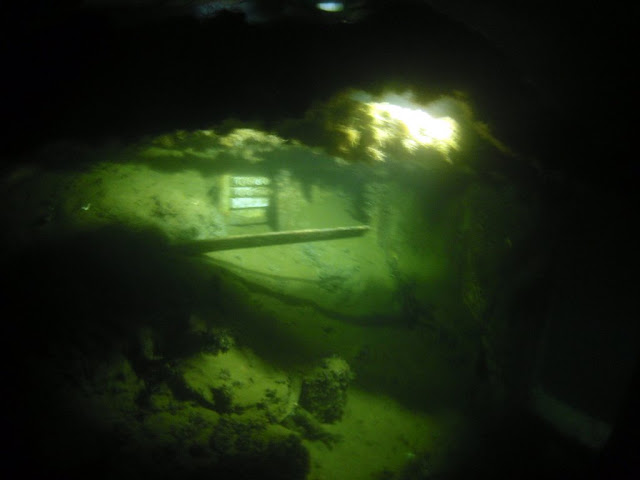 Stan zatoki 1-2. Temp. powietrza 17 stopni. Lekki prąd przy powierzchni. Temp. na powierzchni 18 stopni, na wraku 16(!) stopni. Widoczność .... 0,5-1,5 m.